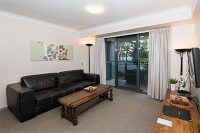 Contains a fully equipped kitchen, lounge and dining area, separate bedroom, bathroom, laundry and balcony. Easy Access doorway to bedroom with extra space between queen bed and wardrobes. Easy Access doorway to bathroom which features a flat floor with shower access. Maximum 2 people.