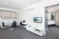 Contains a fully equipped kitchen, lounge and dining area, separate bedroom, bathroom, laundry and balcony. There is a double innerspring sofa in the lounge that can accommodate two extra guests*. Maximum 4 people.